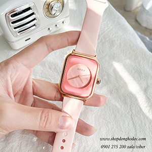 - Tên: Đồng hồ Guou nữ dây silicon hồng mặt chữ nhật hồng pastel ngọt ngào ĐHĐ38504
