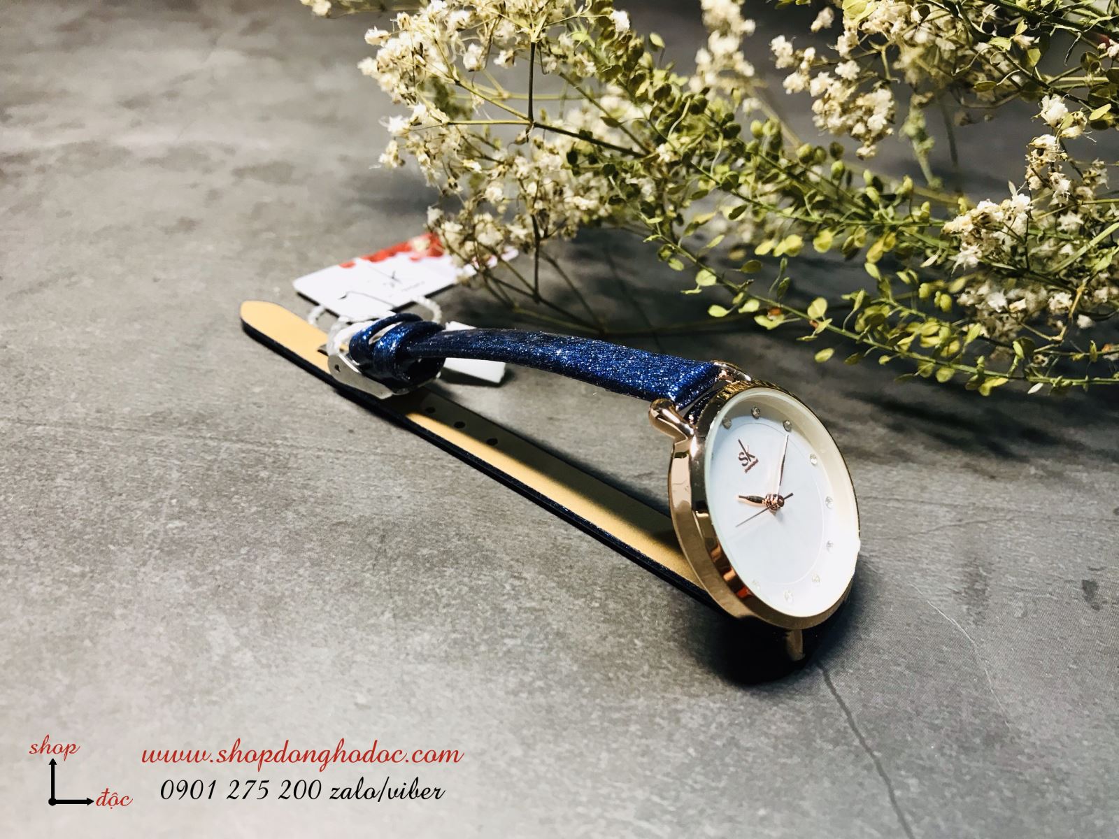 Đồng hồ nữ dây da mặt tròn màu xanh biển sành điệu Shengke SK ĐHĐ12202