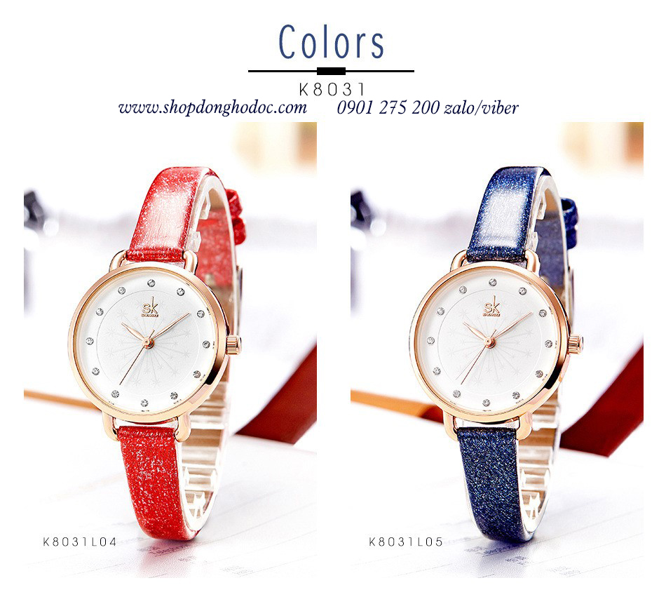- Tên: Đồng hồ nữ dây da mặt tròn màu xanh biển sành điệu Shengke SK ĐHĐ12202