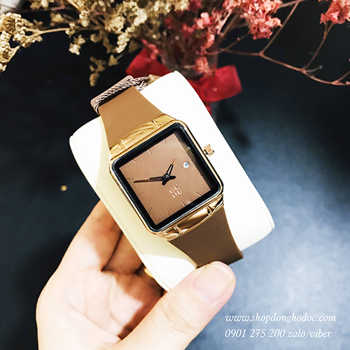 - Tên: Đồng hồ nữ dây Silicon mặt vuông nâu sành điệu Guou ĐHĐ23303
