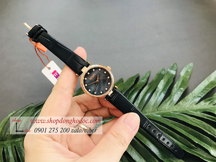 - Tên: Đồng hồ nữ Skmei dây da mặt tròn size nhỏ xanh cá tính ĐHĐ36704